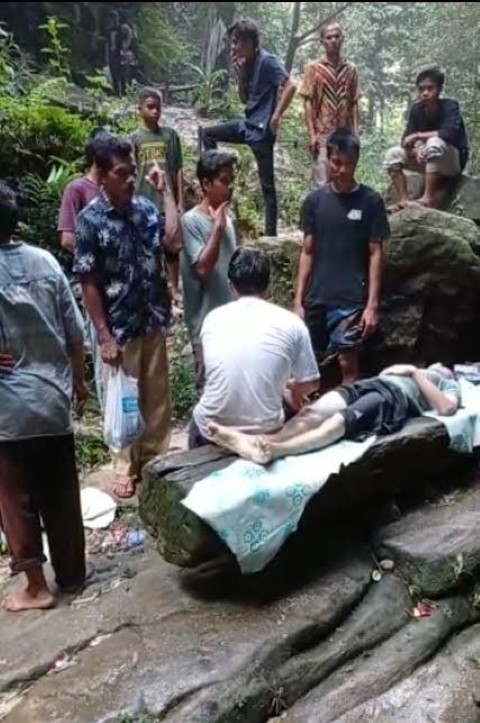 ROHUL, (INDOVIZKA) - David (24), pemuda asal Desa Lintau, Sumatera Barat, meninggal dunia setelah nekat melompat dari atas air terjun, di wiasata Aek Martua Desa Bangin Purba, Kecamatan Bangun Purba, Minggu (31/10/2021) sore.