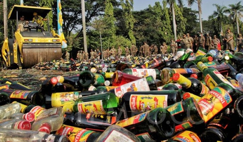 Gatra menerangkan, ratusan botol miras pihaknya sita dari para pedagang serta distributor yang tidak memiliki izin menjual miras.