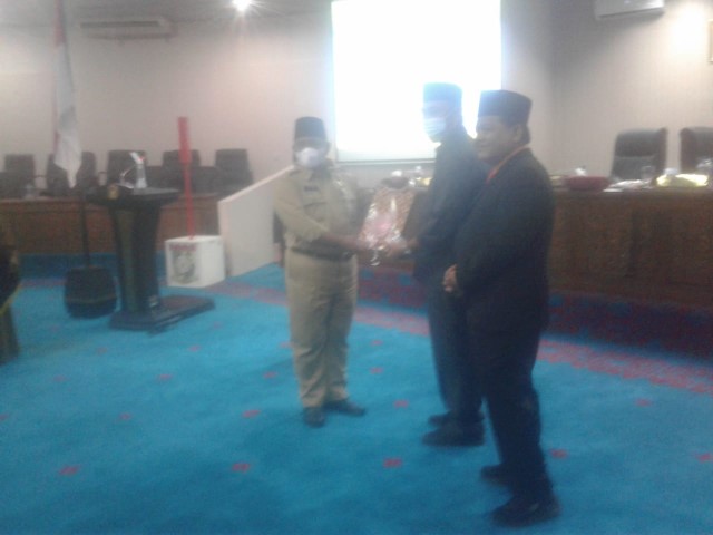 Usai memberikan sambutan lalu, Sekretaris Daerah H Yusri menyerahkan naskah 4 Ranperda yang diajukan oleh Pemerintah daerah kepada Ketua DPRD M Faisal dan didampingi Wakil Ketua H Fahmil dan disaksikan Sekretaris Dewan Ramlah.