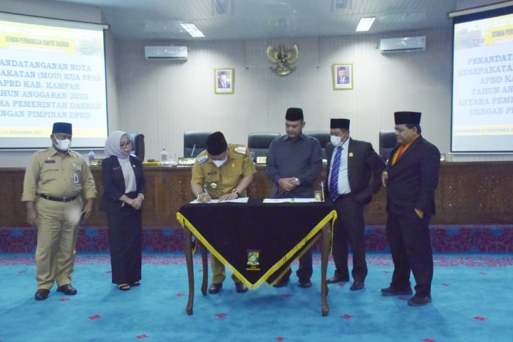 Dalam rapat paripurna tersebut, Bupati Kampar menandatangi naskah MoU terkait Rancangan KUA-PPAS Rancangan APBD kabupaten Kampar TA 2022.