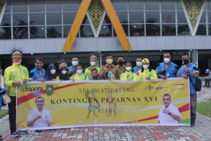 PEKANBARU, (INDOVIZKA)- Kontingen Provinsi Riau Pekan Paralympic Nasional (Peparnas) XVI Papua 2021 setelah terbang mengunakan pesawat Carteran selama Enam (6) jam, akhirnya tiba di Bandara Sultan Syarif Qasim 2 Pekanbaru dengan selamat.