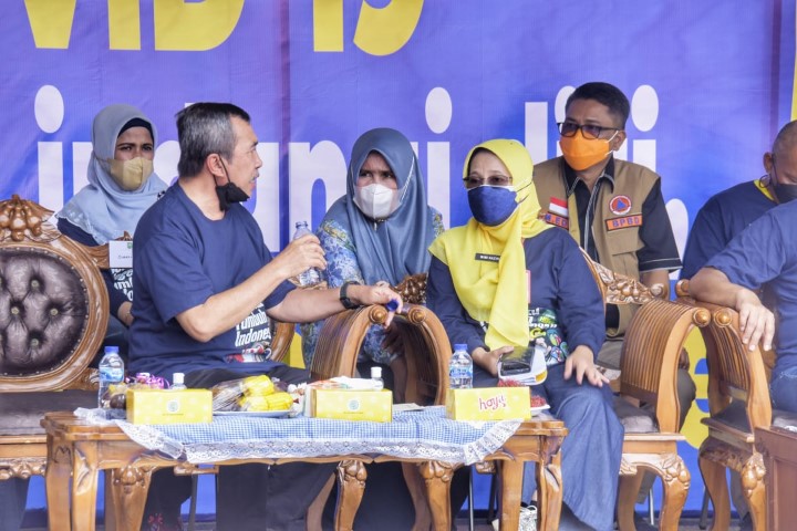 SIAK HULU, (INDOVIZKA) - Peringatan Hari Kesehatan Nasional (HKN) Ke-57 Tingkat Provinsi Riau yang dipusatkan di Lapangan SMUN 02 Kubang Jaya, Kecamatan Siak Hulu, Kabupaten Kampar berjalan lancar, meskipun tanpa kehadiran Bupati Kampar H Catur Sugeng Susanto, Sabtu (20/11/2021).