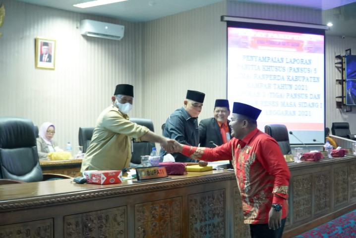 Apresiasi ini disampaikan oleh Sekretaris Daerah Kabupaten Kampar pada rapat paripurna agenda Penyampaian Laporan Panitia Khusus Lima Ranperda Kabupaten Kampar Tahun 2021, bertempat di Ruang Rapat Paripurna, Lantai II, Gedung DPRD Kabupaten Kampar, Bangkinang Kota, Jalan Panglima Khotib, Kelurahan Langgini, Kecamatan Bangkinang Kota, Kabupaten Kampar pada hari Senin (20/12/2021) kemarin.