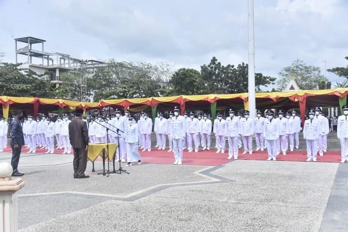 TEMBILAHAN, (INDOVIZKA)- Bupati Indragiri Hilir (Inhil) H.Muhammad Wardan resmi melantik sebanyak 96 orang Kepala Desa terpilih pada Pilkades Serentak 2021 di Lapangan Utama Gajah Mada, Tembilahan, Rabu (29/12/2021).