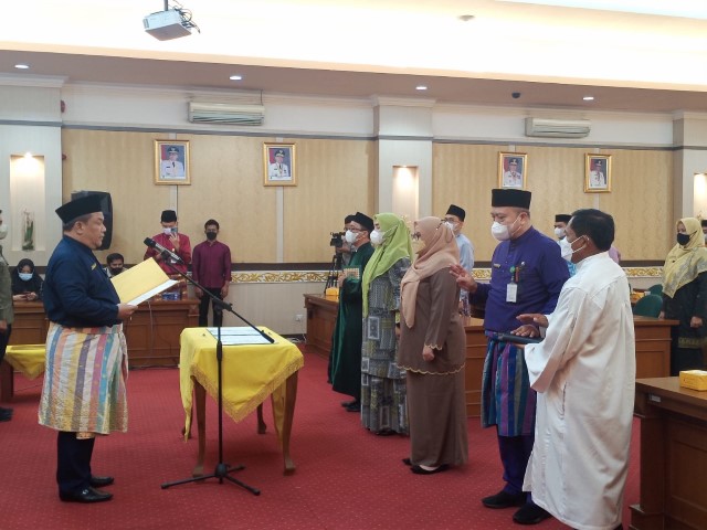 PEKANBARU - Pemerintah Provinsi (Pemprov) Riau melakukan pelantikan 392 pejabat fungsional di lingkungan pemerintah setempat, Jumat (31/12/21) di Ruang Melati Kantor Gubernur Riau.