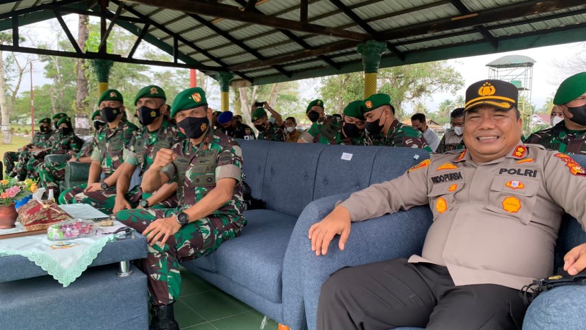 Usai acara ramah tamah pun, Kapolres Kampar masih terlihat berbincang dan bersenda gurau dengan para pejabat TNI yang masih berada di Mako Yonif 132/BS.
