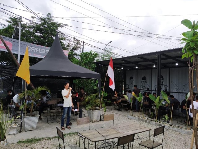 BANGKINANG (INDOVIZKA) - Dalam rangka menggalakkan Elektronik Sports dikalangan remaja guna menghindari dari kenakalan remaja di Bangkinang Kota, Pengurus Cabang (PC) Angkatan Muda Partai Golkar (AMPG) Kabupaten Kampar mengelar Turnamen Mobile Legend Offline Season 1, Jum'at (21/01/2022) malam, di Cafe Kopi Rakjat Bangkinang Kota, Jalan Jenderal Sudirman, Bangkinang Kota, Kelurahan Langgini, Kecamatan Bangkinang Kota, Kabupaten Kampar.