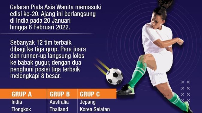 Piala Asia Wanita 2022 berlangsung di India pada 20 Januari-6 Februari. Indonesia baru lima kali tampil di turnamen ini dengan penampilan terakhir pada 1989. Prestasi terbaik dicatat pada 1977 dan 1986 dengan masuk 4 besar.