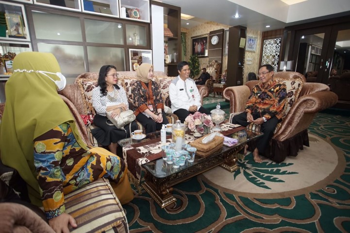 TEMBILAHAN (INDOVIZKA) - Bupati Inhil HM Wardan menjamu Direktur utama Bank Riau Kepri beserta rombongan yang akan melaksanakan penanaman bibit mangrove di Kecamatan tanah merah, yang Kamis (27/1/22)