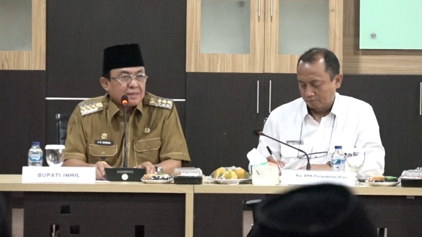 INDOVIZKA.COM- Bupati Indragiri Hilir (Inhil) melakukan Entry Brefing bersama tim pemeriksa Intern, Badan Pemeriksa Keuangan (BPK) Republik Indonesia Wilayah Riau dalam rangka menyusun Laporan Keuangan Pemerintah Daerah (LKPD) Tahun Anggaran 2019. Selasa, (28/01/2020) pagi.