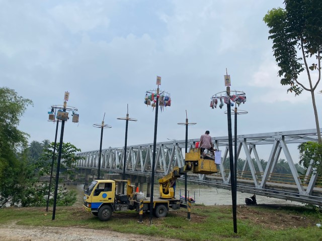 "Ya sejak kemarin penanaman batang pohon Pinang ini telah selesai. Kemudian dilanjutkan dengan pemasangan hadiah juga sore sampai pagi ini," kata Husni lagi.