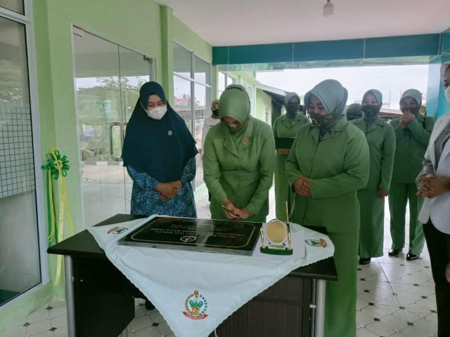 TEMBILAHAN, (INDOVIZKA) - Ketua Persit KCK Koorcabrem 031/WB Fitri M Syech Ismed resmikan Pos Pembinaan Terpadu (Bindu) Penyakit Tidak Menular( PTM), Selasa (8/2/22).