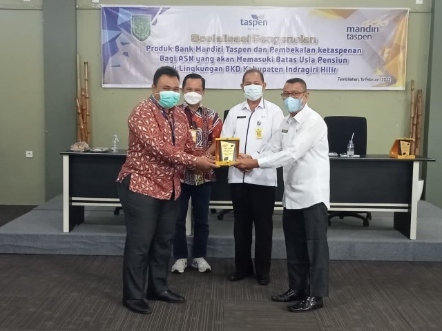 INHIL, (INDOVIZKA) - Bank Mandiri Taspen (Mantap) Kantor Cabang Pembantu (KCP) Tembilahan gelar sosialisasi pelayanan ketaspenan dan pengenalan Bank Mandiri Taspen bagi Aparatur Sipil Negara (ASN) yang akan memasuki batas usia pensiun (BUP) di Hotel Top 5, Rabu (16/2/2022).
