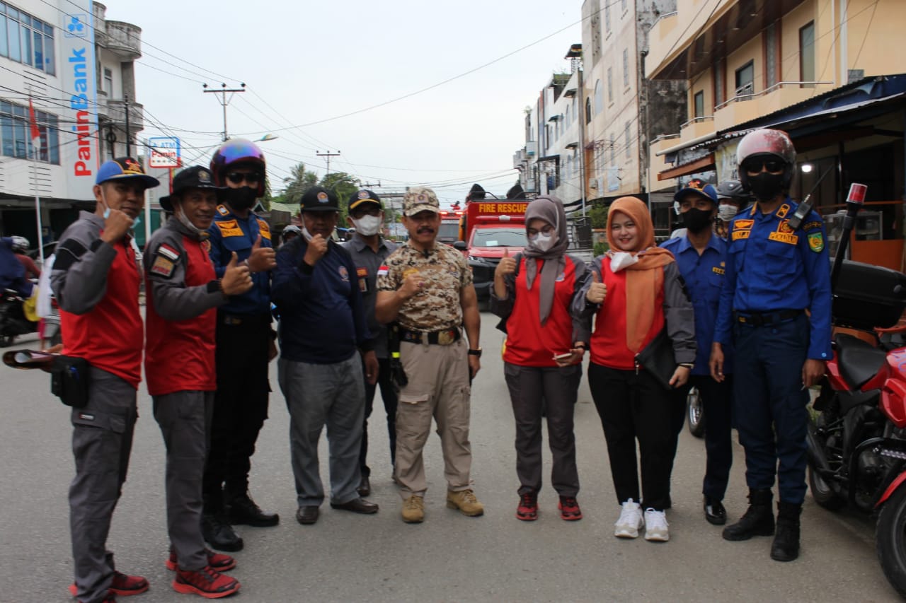 Tampak Kepala DPKP, Drs H Eddiwan Shasby, MM memimpin langsung patroli dalam memberikan himbauan ke pelosok lorong untuk mengantisipasi kelalaian warga dalam melakukan pencegahan kebakaran.