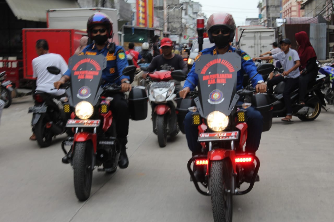 Petugas berkeliling menggunakan mobil Damkar dan motor Damkar guna dihimbau Bupati Kabupaten Indragiri Hilir (Inhil), HM Wardan, tentang bahaya kebakaran di bulan suci Ramadhan ini.
