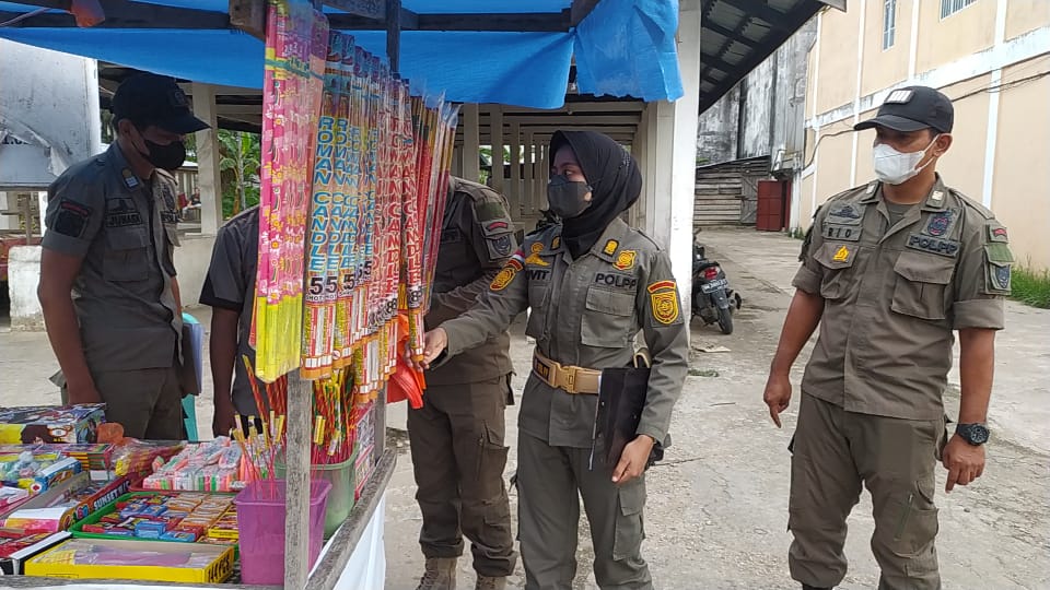 Satpol PP Kab. Indragiri Hilir berhasil menyita ratusan packs petasan dalam Kegiatan Non Yustisi, razia petasan dan kembang api
