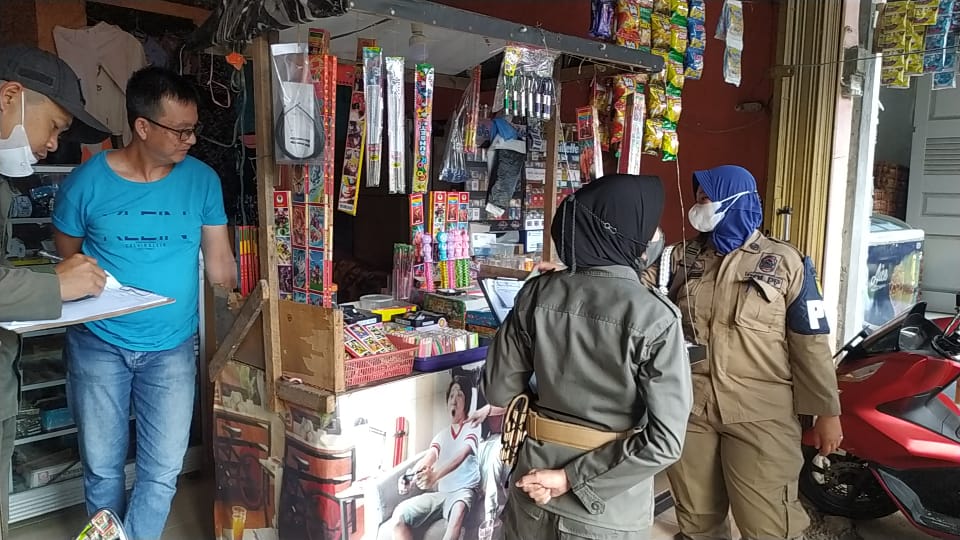 Pedagang petasan yang terjaring razia dimintai keterangan, sedangkan barang bukti akan dikumpulkan Mako Satpol PP Kab. Inhil.(Galeri)
