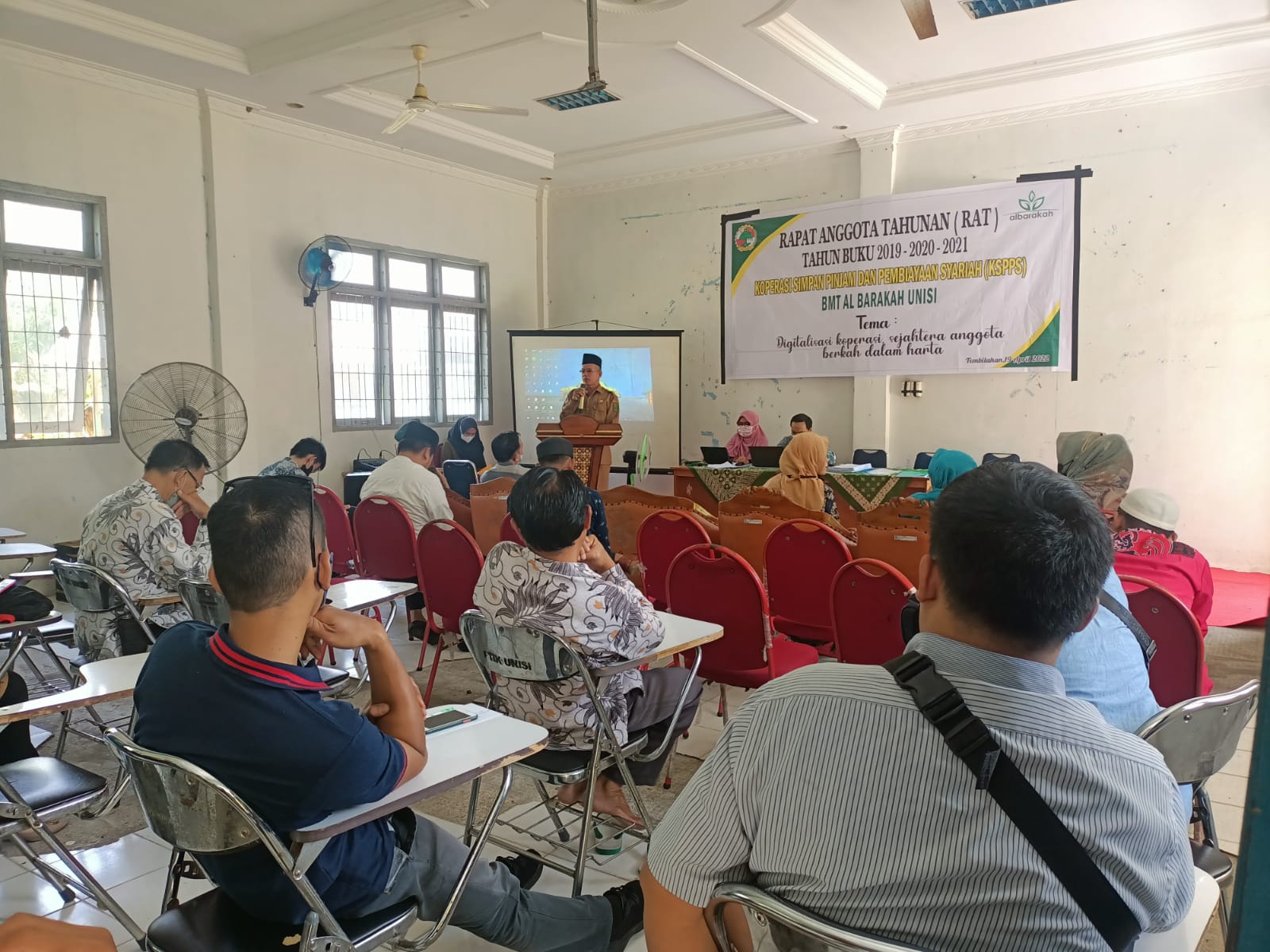 Kepala Dinas Koperasi dan UMKM Kabupaten Indragiri Hilir H. Ilyanto, melalui Kasi Penerapan Peraturan dan Sanksi, Drs. Syamsir, M.Si, menyampaikan, BMT Al Berakah Unisi merupakan BMT yang bisa dikatakan cepat dalam pencapaiannya, terbukti hanya terhitung beberapa tahun sudah berani melakukan RAT.