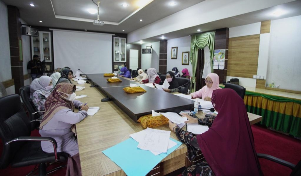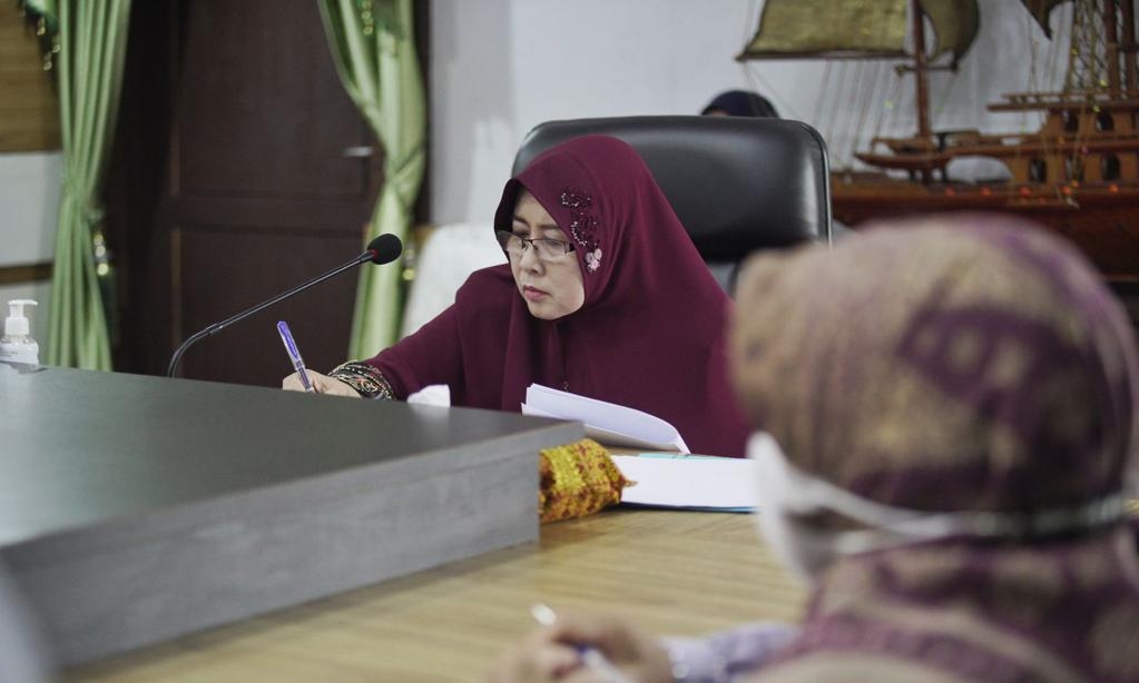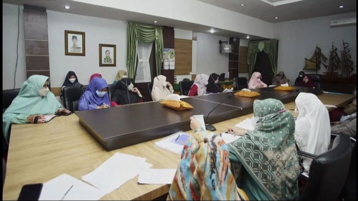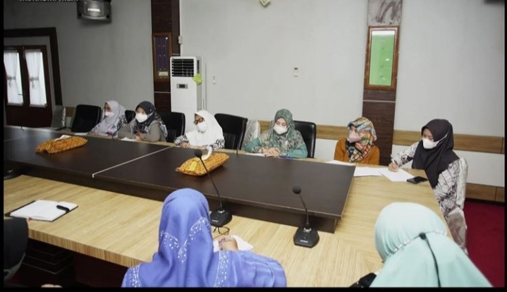 TEMBILAHAN - Tim Penggerak Pemberdayaan dan Kesejahteraan Keluarga (TP-PKK) kabupaten Indragiri Hilir (Inhil) menggelar rapat monitoring dan evaluasi rencana tindak lanjut program prioritas pokja masing-masing di ruang rapat kediaman Rumah Dinas Bupati Tembilahan, Rabu (20/4/2022).