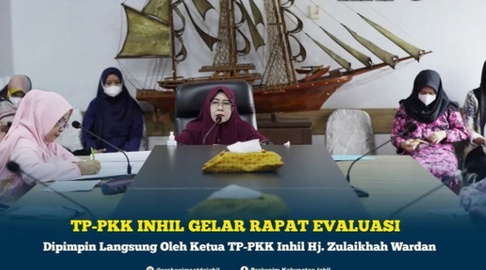 Rapat tersebut dipimpin langsung oleh Ketua TP PKK Kabupaten Inhil Hj. Zulaikhah Wardan dan dihadiri para wakil ketua dan anggota TP PKK Inhil. Evaluasi yang dilakukan itu terkait kegiatan-kegiatan PKK yang telah dilaksanakan.
