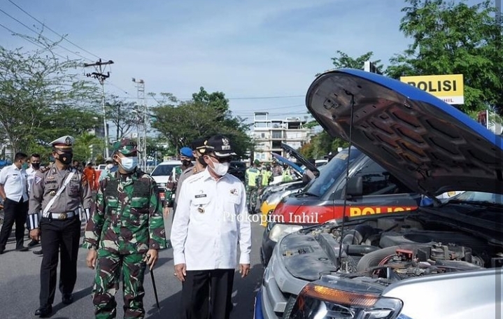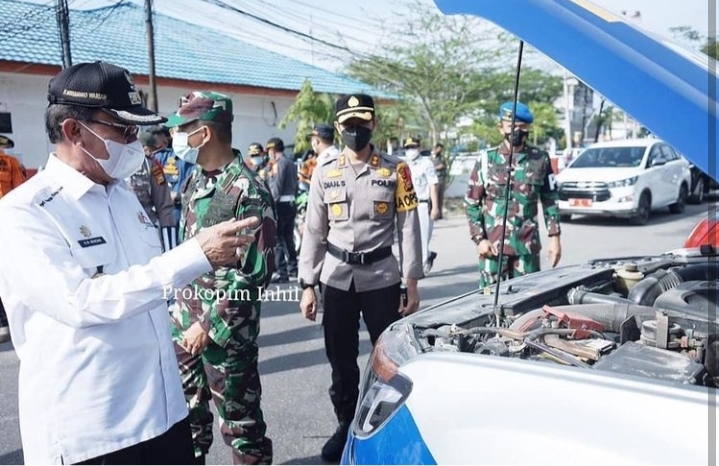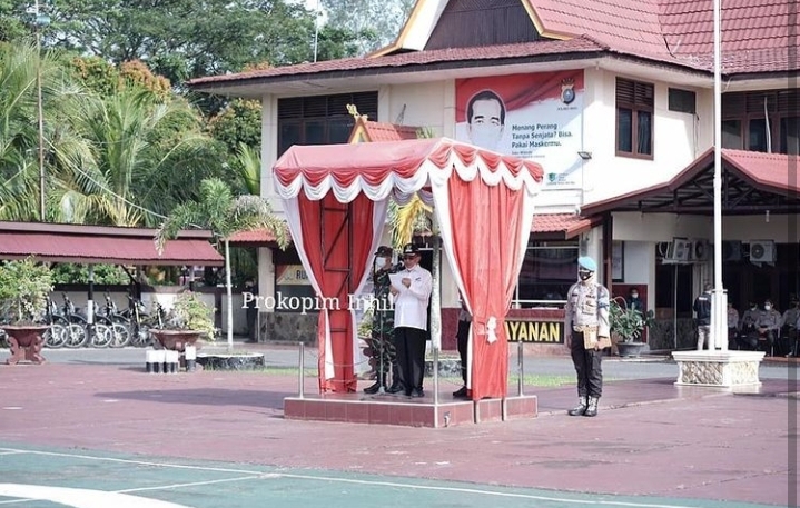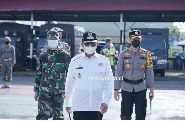 TEMBILAHAN (INDOVIZKA) - Bupati Indragiri Hilir HM. Wardan didampingi Kapolres dan Komandan Kodim 0314 Indragiri Hilir memimpin Apel Gelar Pasukan Operasi Ketupat Lancang Kuning tahun 2021, Rabu (5/5/2021).