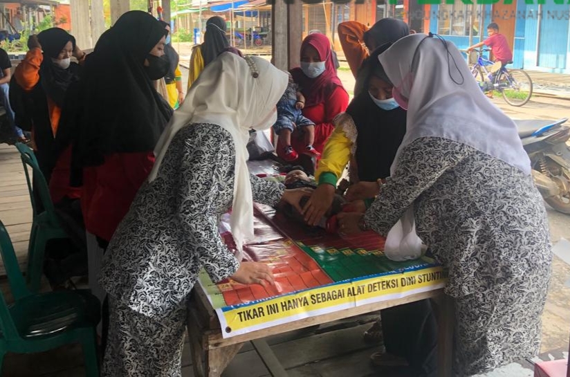INHIL - UPT Puskesmas Simpang Gaung gelar imunisasi rutin lengkap di Posyandu Mawar Desa Belantaraya, Kecamatan Gaung, Kabupaten Indragiri Hilir (Inhil).