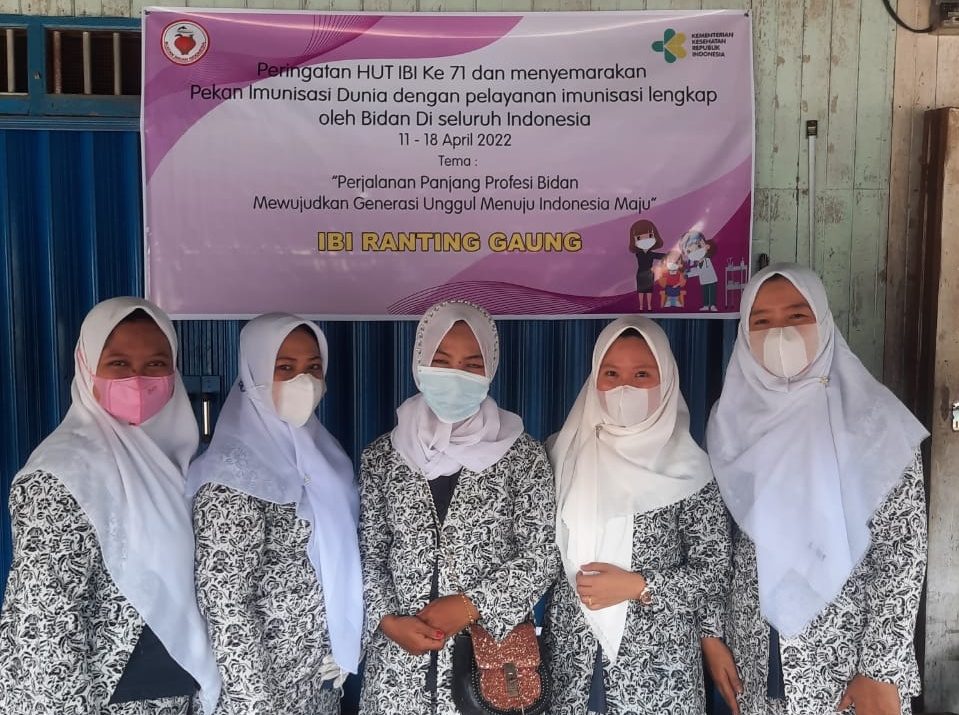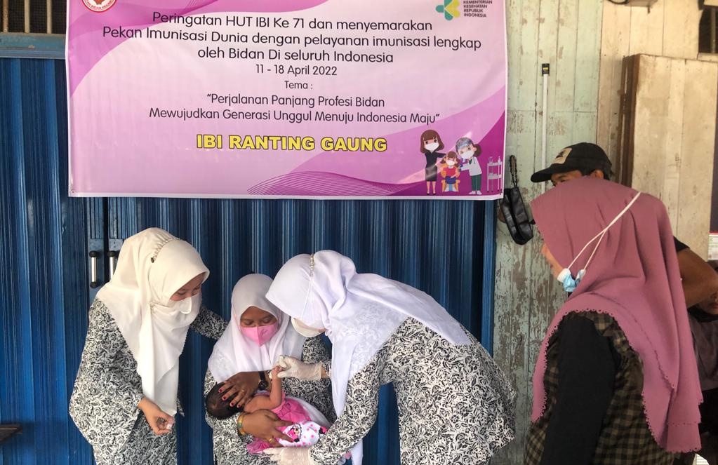 Kegiatan Imunisasi rutin lengkap ini juga dalam rangka menyemarakan Pekan Imunisasi Dunia 2022 dan memperingati Hari Ulang Tahun (HUT) Ikatan Bidan Indonesia (IBI) ke-71 dengan melibatkan IBI Ranting Gaung.