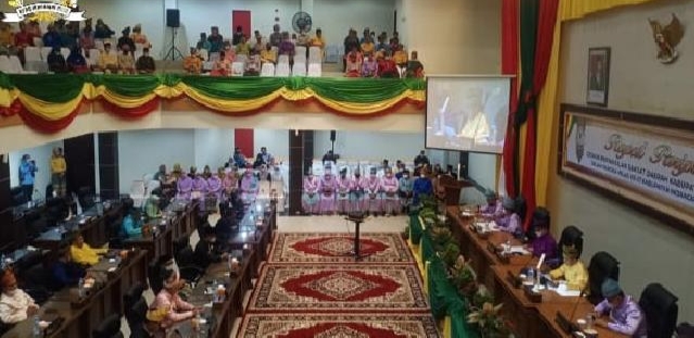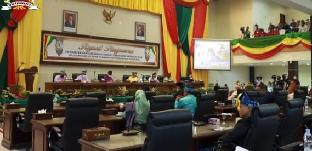 TEMBILAHAN - Ketua Dewan Perwakilan Rakyat Daerah (DPRD) Kabupaten Indragiri Hilir Dr H Ferryandi ST MT MM pimpin rapat paripurna yang bersempena dengan Milad Inhil ke-57, di Gedung DPRD Jalan Soebrantas Tembilahan, Selasa (14/6/22).