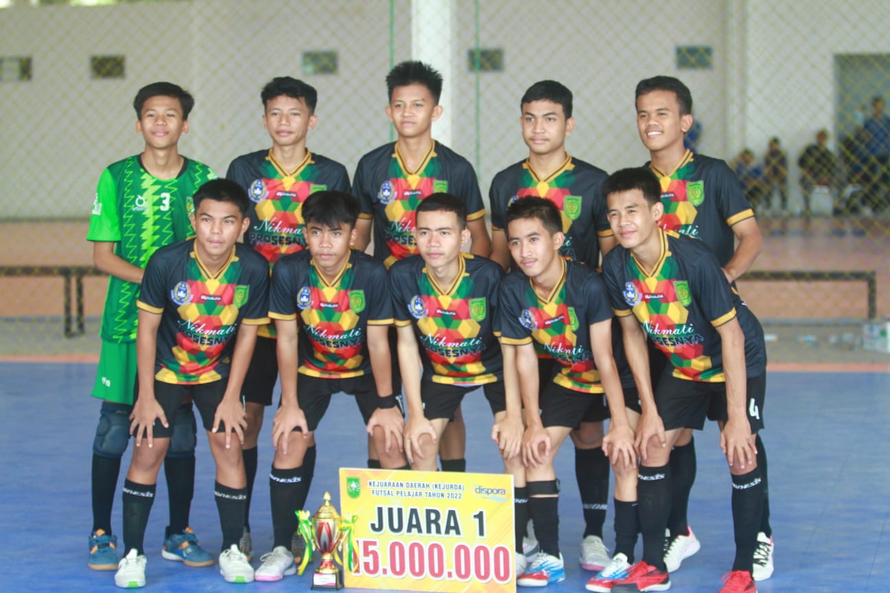 PEKANBARU- Tim Futsal Kabupaten Indragiri Hilir (Inhil) keluar sebagai Juara 1 Kejuaraan Daerah (Kejurda) Futsal U16 Provinsi Riau tahun 2022 setelah berhasil mempermalukan tuan rumah Pekanbaru dengan skor telak 4-1 di Partai Final.