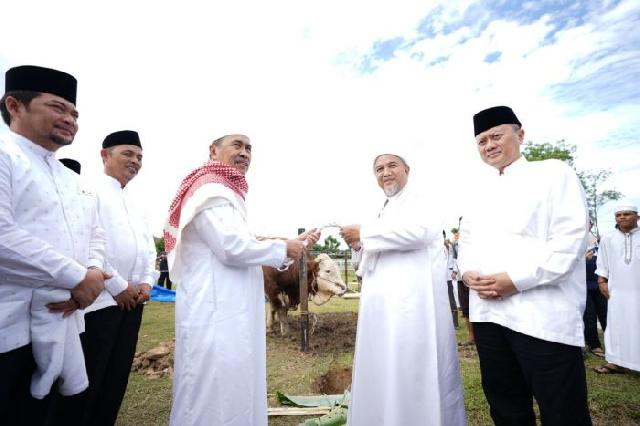 Gubernur Riau Syamsuar secara langsung menyerahkan sapi kurban bantuan kemasyarakatan Presiden RI dengan berat 814 Kg untuk Provinsi Riau tahun 2022 kepada Syekh Ismail Royan, selaku Pimpinan Pondok Pesantren Babussalam.
