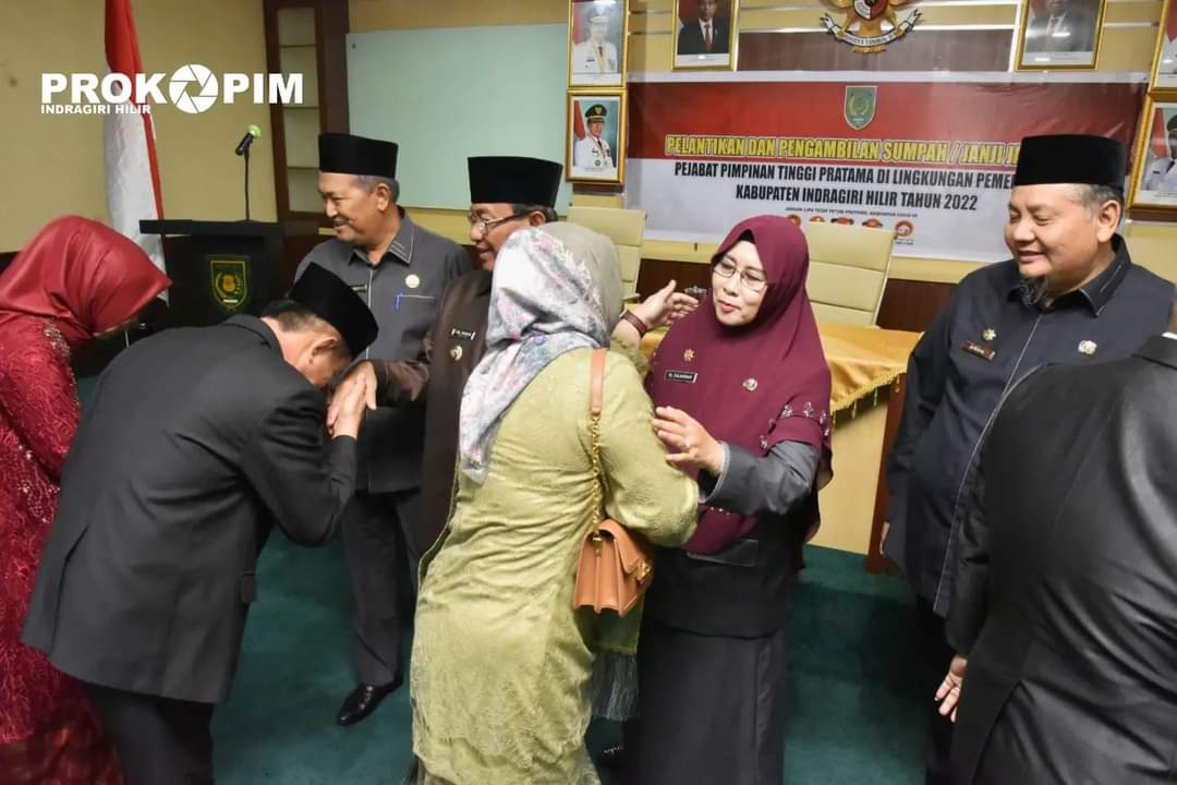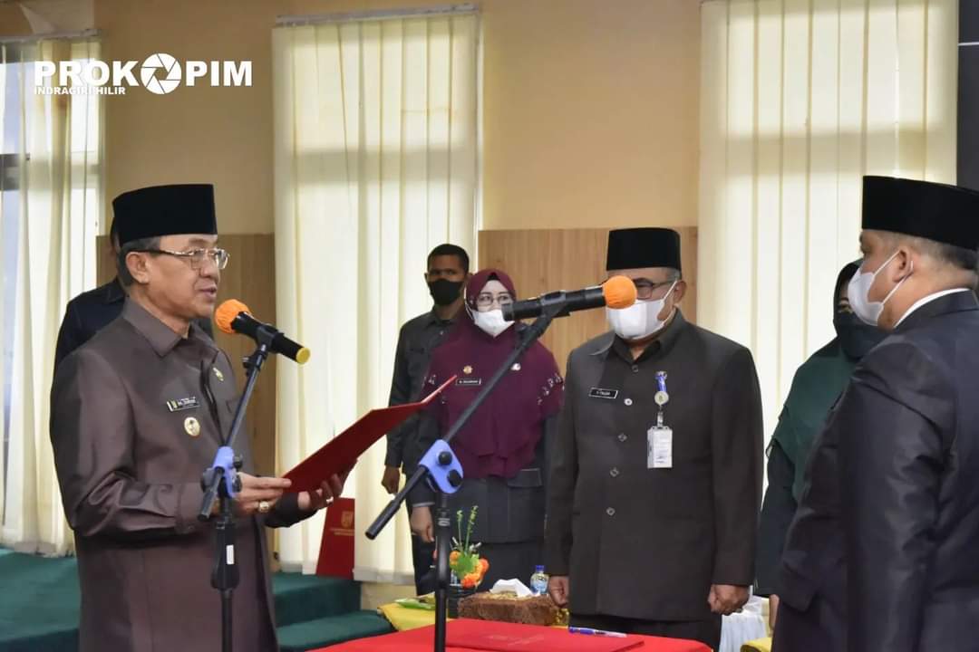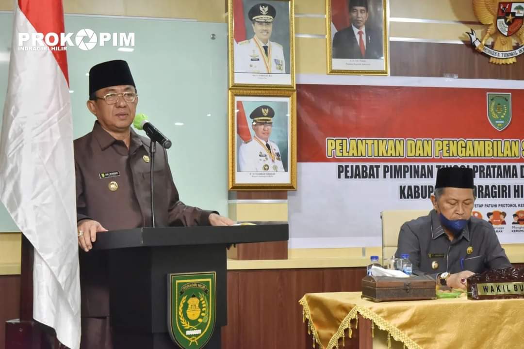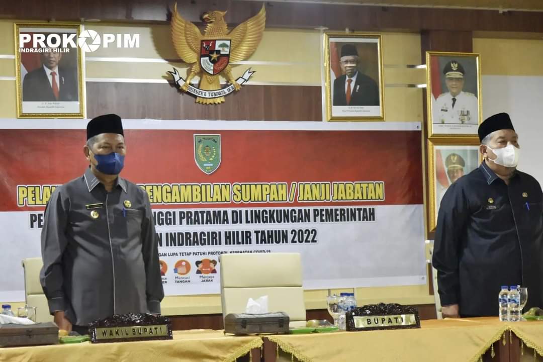 TEMBILAHAN - Selasa (2/8/2022) bertempat di aula lantai 5 Kantor Bupati Jl. Akasia no. 1 Tembilahan, Bupati Indragiri Hilir H. M. Wardan melantik dan mengambil sumpah 5 Pejabat Pimpinan Tinggi Pratama dilingkungan Pemkab Inhil.
