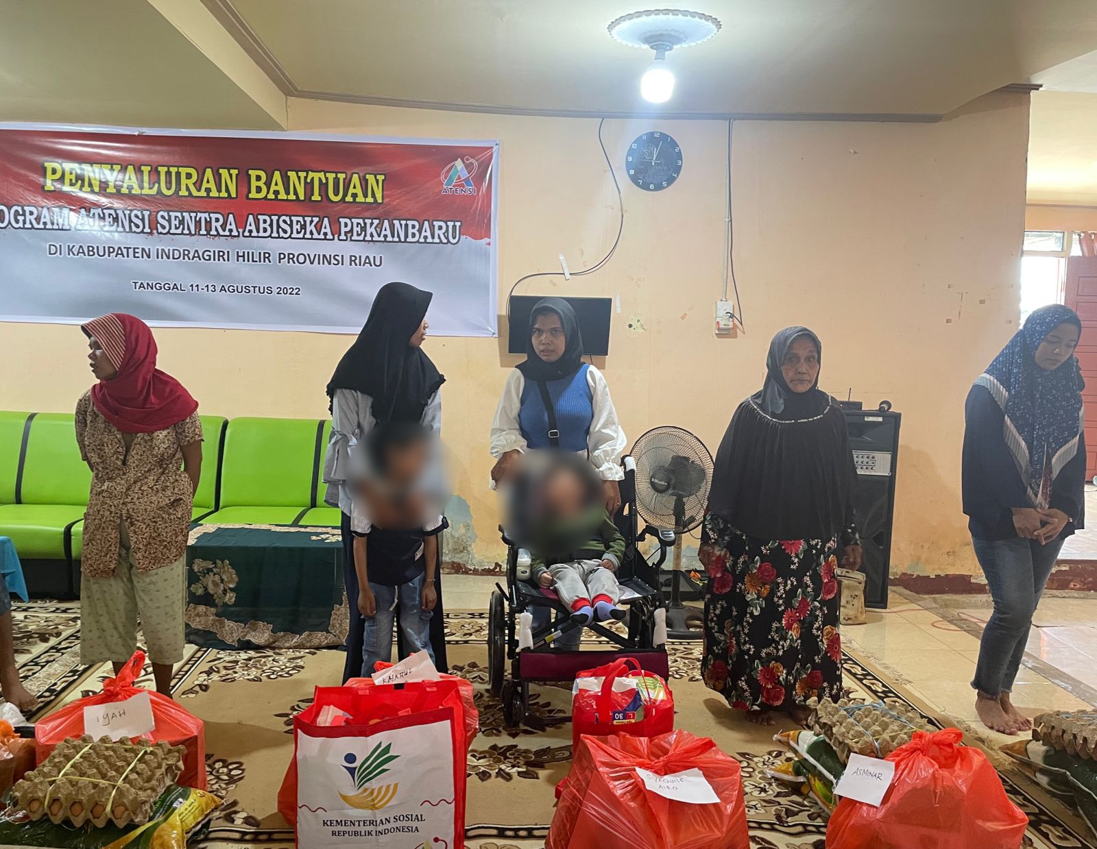 INHIL, – Dinas sosial Kabupaten Inhil (Dinsos) bersama Kementerian Sosial Republik Indonesia (Kemensos RI) melalui Sentra Abiseka Pekanbaru Serahkan Bantuan Kepada 50 Calon PKKS data klaster anak, penyandang disabilitas dan lanjut Usia di Rumah Singgah Dinas Sosial Jalan Bunga Tembilahan, Kamis (11/8).