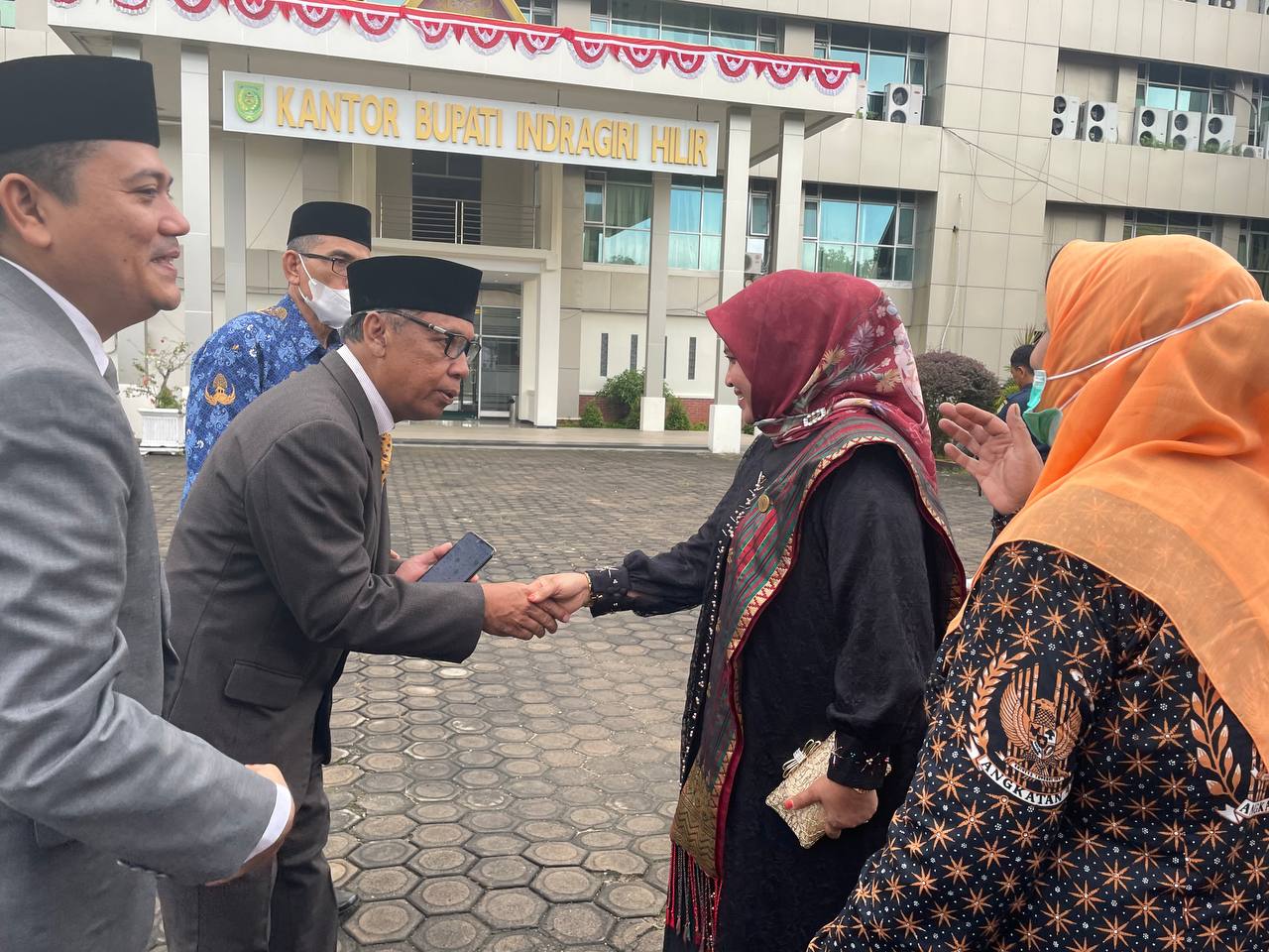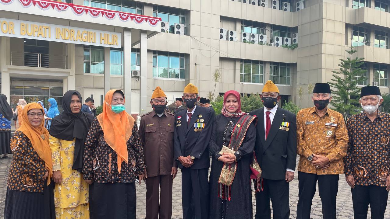 TEMBILAHAN, - Kepala Dinas Sosial Kabupaten Indragiri Hilir (Inhil), Hj Djamilah MM menghadiri Apel peringatan Hari Ulang Tahun (HUT) Kemerdekaan Republik Indonesia (RI) ke77 di Halaman Kantor Bupati Inhil, Rabu (17/8).
