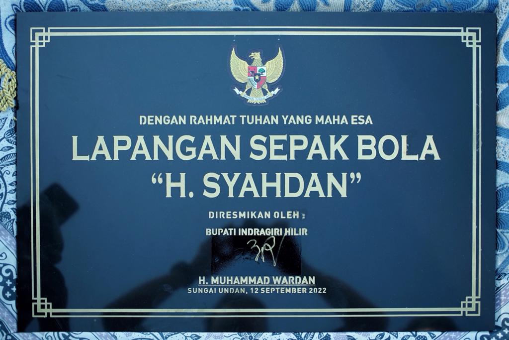 Pada kesempatan tersebut juga Bupati Inhil secara langsung meresmikan keberadaan Lapangan Sepakbola H.Syahdan Desa Sungai Undan dengan menandatangani prasasti dihadapan seluruh masyarakat penonton serta tamu undangan.