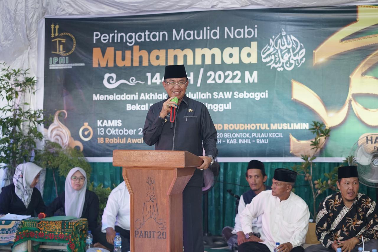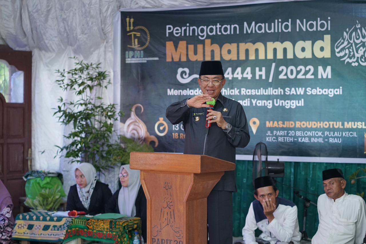 Hal tersebut disampaikannya saat menghadiri peringatan Maulid Nabi Muhammad SAW 1444 Hijriah di parit 20 Pulau Kecil Kecamatan Reteh, Kamis (13/10/22).