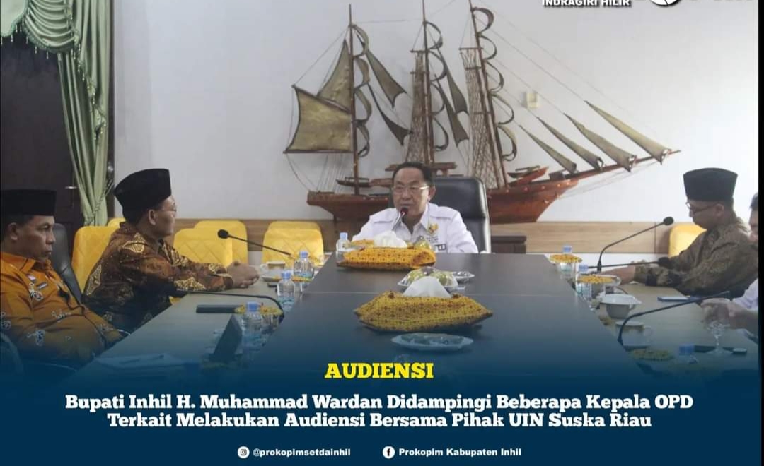 INDOVIZKA.COM - Bupati Indragiri Hilir (Inhil) Drs. H. Muhammad Wardan, MP melaksanakan Audiensi bersama pihak Universitas Islam Negeri Sultan Syarif Kasim (UIN Suska) Riau yang dipimpin oleh Dekan DR. H. Kusnadi di Ruang Rapat Kediaman Bupati Jl. Kesehatan, Rabu (02/11/2022).