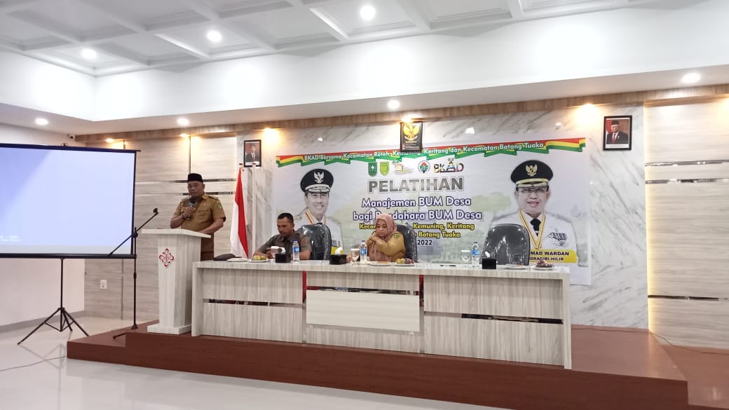 INDOVIZKA.COM- Dinas Pemberdayaan Masyarakat Desa (PMD) Kabupaten Indragiri Hilir (Inhil) hadiri sekaligus buka kegiatan pelatihan Menajemen BUMDes bagi bendahara BUMDes sebanyak Tujuh Kecamatan di Aula Hotel Arista Tembilahan Jl Kartini, Selasa (1/11/2022).