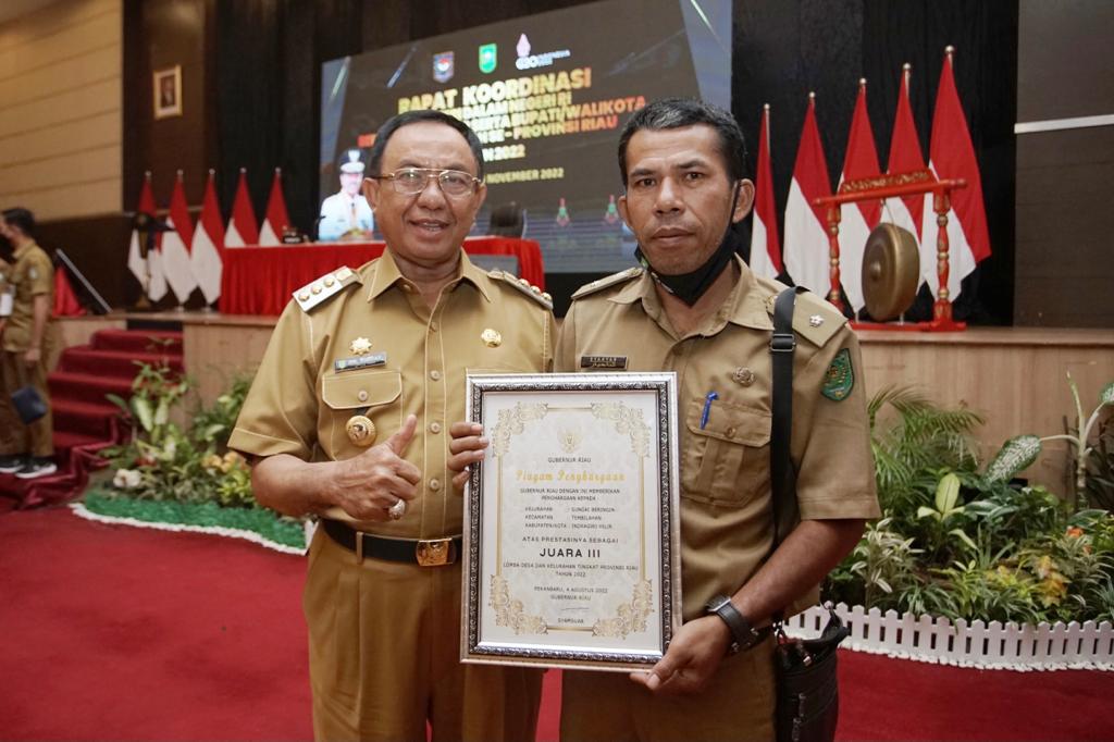 Bupati juga menyampaikan ucapan selamat kepada Kelurahan Sungai Beringin Yang mendapatkankan juara Tiga atas penilaian Kinerja Terbaik tingkat provinsi Riau ditahun 2022.