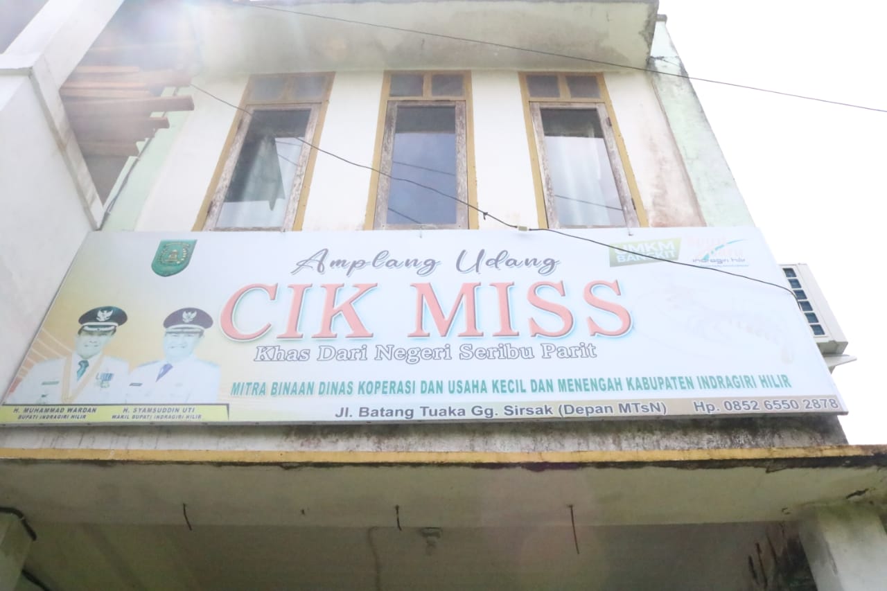 Amplang udang cik miss yakni mitra binaan Dinas Koperasi Usaha Kecil dan usaha kecil dan Menengah kabupaten Inhil yakni bertempat di jalan Batang Tuaka Gg. Sirsak, Pertama kali merintis dari warung ke warung dengan harga ribuan, hingga market pemasaran nya makin luas, dengan harga jual kecil perbungkus diharga Rp.12.000,.