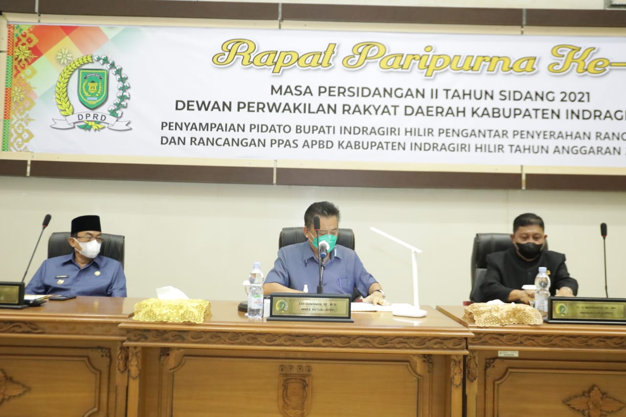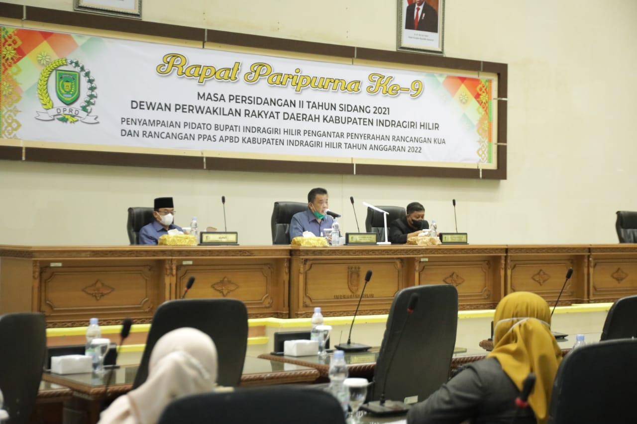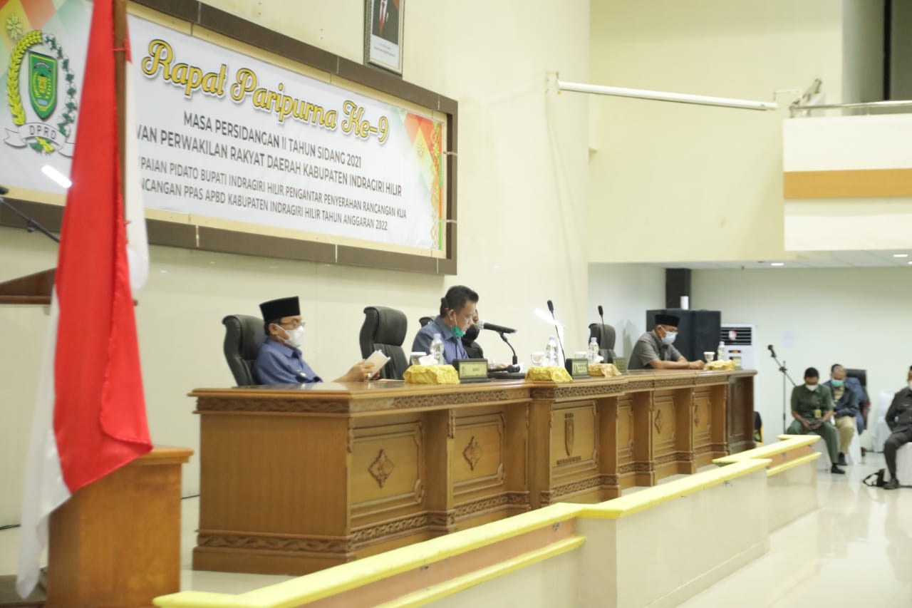 TEMBILAHAN, (INDOVIZKA)- Rapat Paripurna Penyampaian Pidato Bupati Inhil Pengantar Penyerahan KUA PPAS TA 2022 DPRD Inhil dipimpin Wakil Ketua DPRD Inhil Edy Gunawan