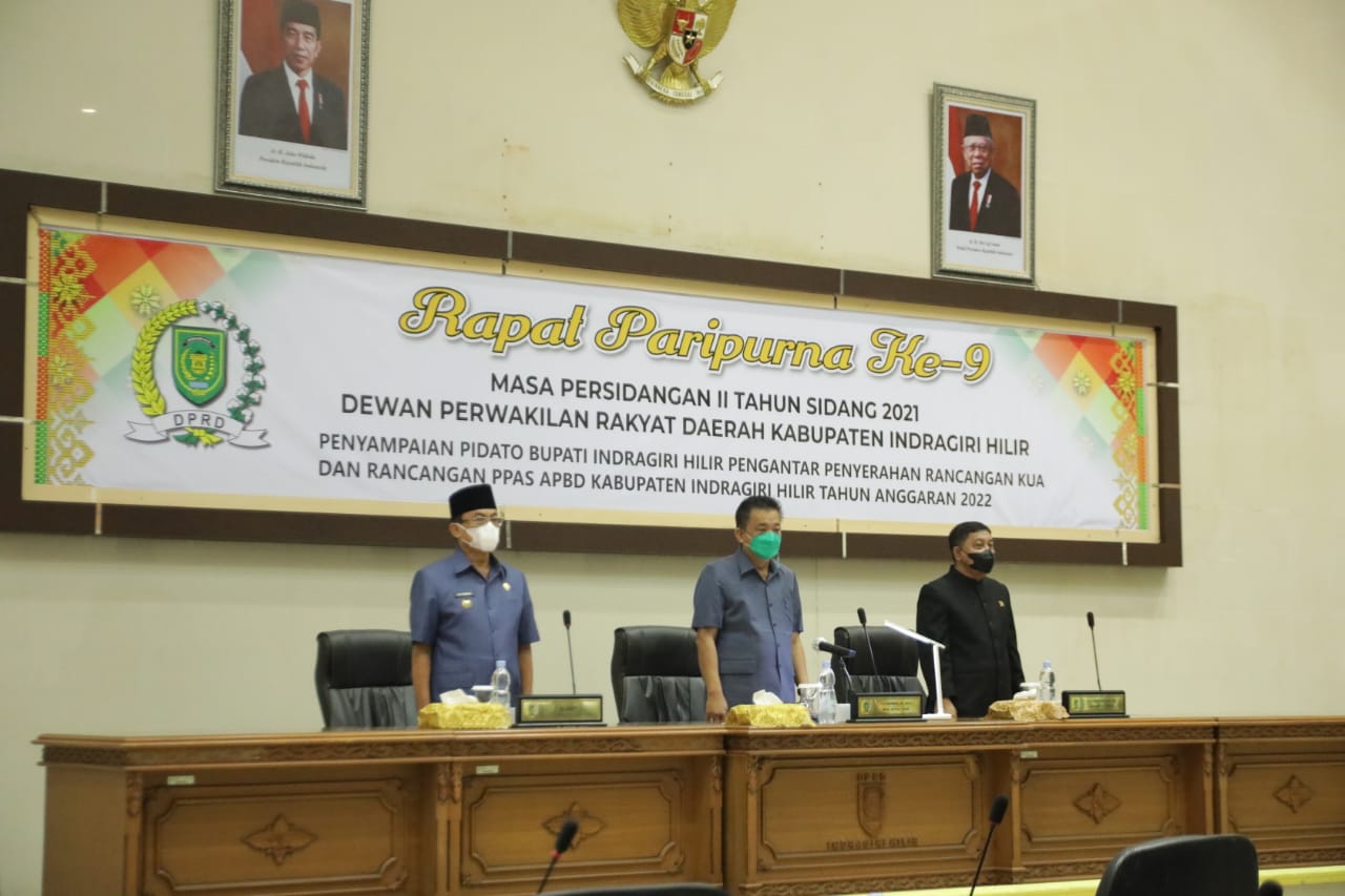 DPRD Inhil Kamis (19/8) menggelar Rapat Paripurna Rancangan Kebijakan Umum APBD (KUA) dan Prioritas Plafon Anggaran Sementara (PPAS) APBD Kabupaten Indragiri Hilir TA 2022 di Gedung DPRD Inhil. Rapat Paripurna ke-9 Masa persidangan II tahun sidang 2021 DPRD Inhil ini dibuka dan dipimpin oleh Wakil Ketua DPRD Edy Gunawan.
