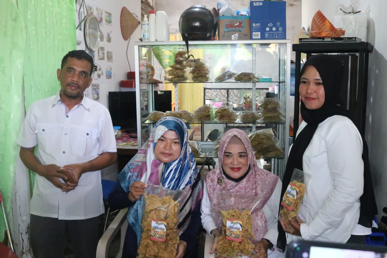 INDOVIZKA.COM, - Dinas Koperasi Dan Usaha Kecil Menengah (UKM) Kabupaten Indragiri Hilir memonitoring Usaha Mikro Kecil Menengah binaan yakni Peyek Bunda Nabil di jalan Jl. Gerilya parit. 8 Tembilahan.