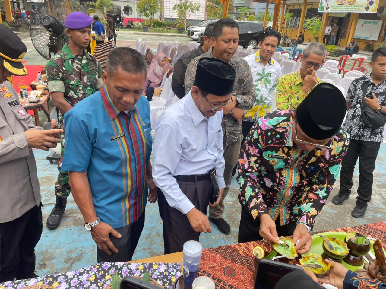 Bazar UMKM dan Festival Kuliner dibuka langsung oleh Bupati Inhil, H M Wardan ditandai dengan pemotongan pita diikuti 53 pelaku UMKM.
