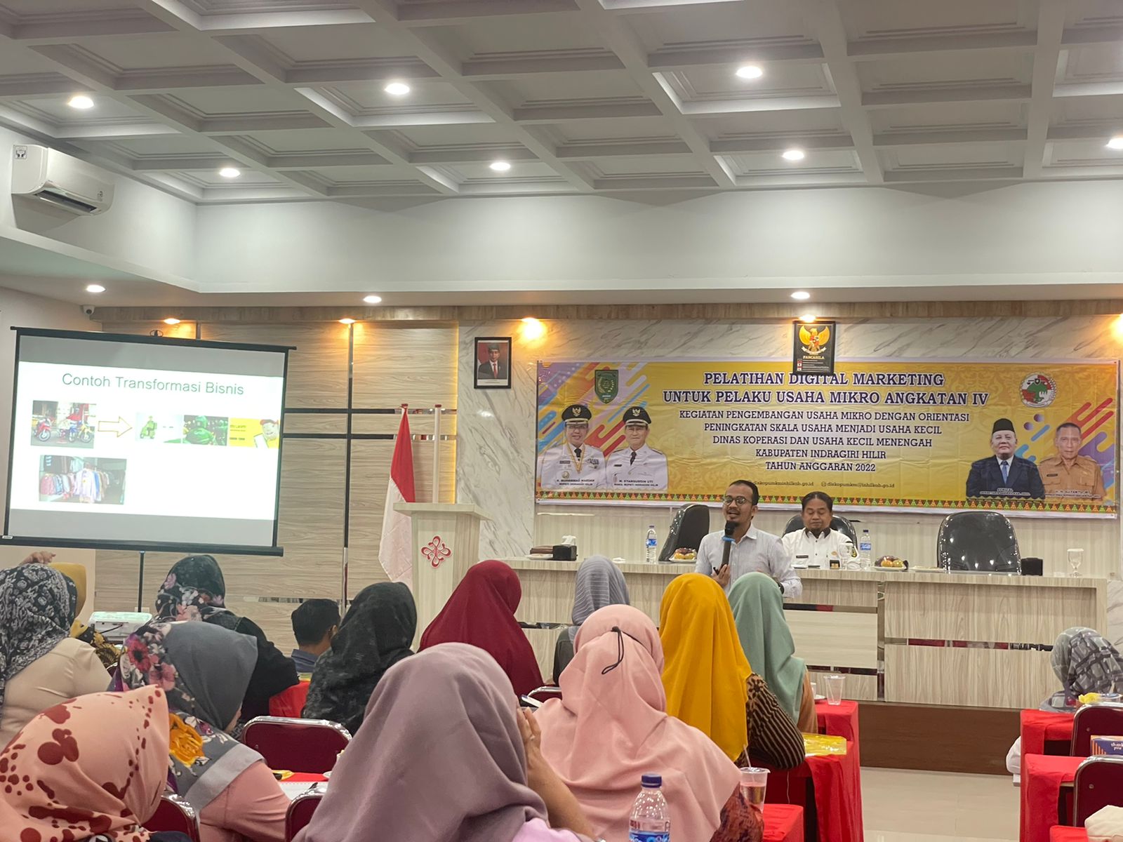 INDOVIZKA.COM, - Dinas Koperasi dan Usaha Kecil Menengah (UKM) Kabupaten Indragiri Hilir menggelar pelatihan digital kepada para pelaku Usaha Mikro Kecil Menengah (UMKM) angkatan ke IV dan V Aula Hotel Arista, Selasa (22/11/22).