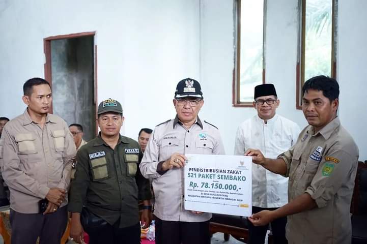Bertempat di Kantor Desa Kuala Keritang, penyerahan bantuan ini diserahkan langsung oleh Bupati H. Muhammad Wardan secara simbolis kepada korban terdampak banjir.