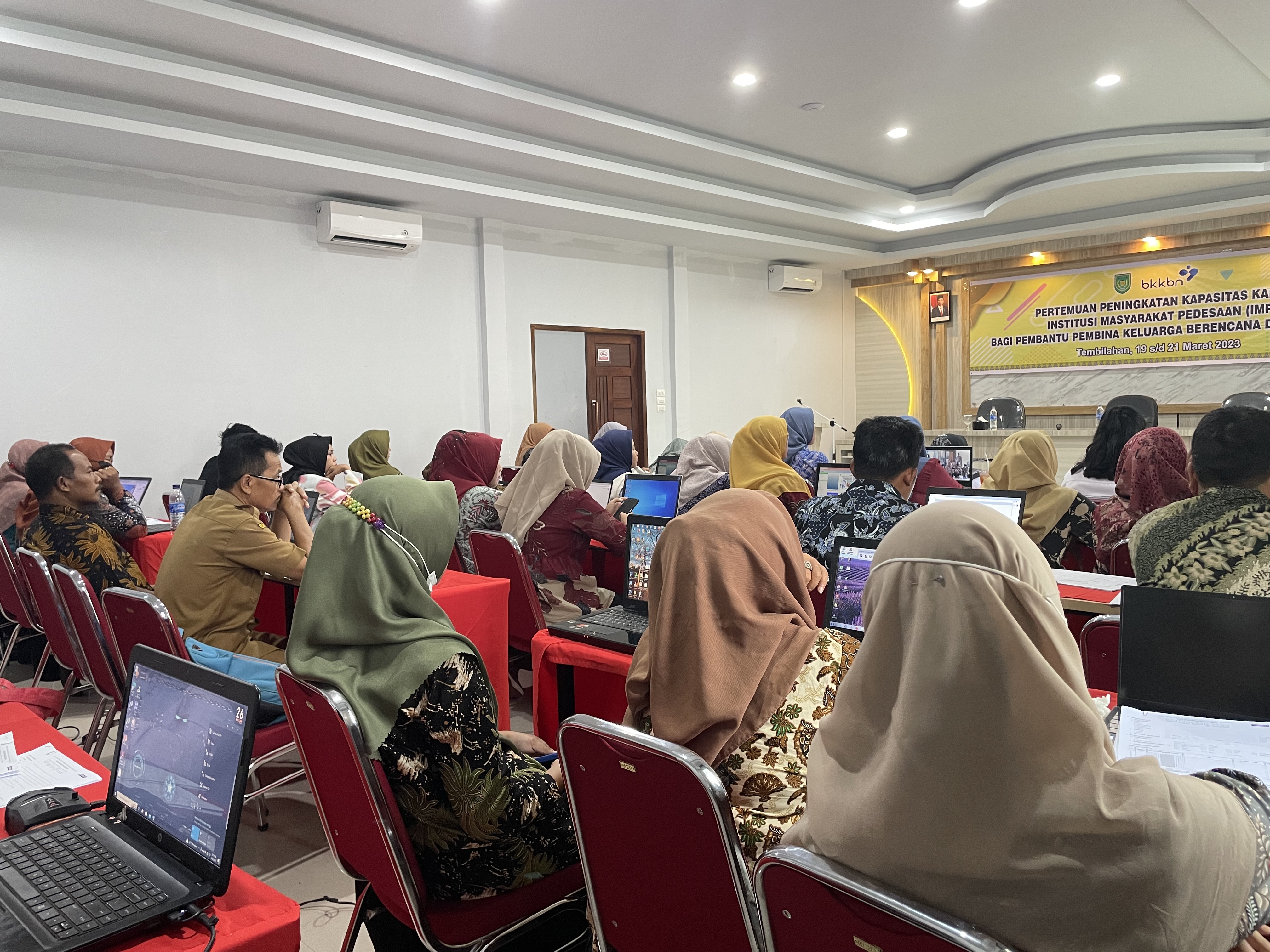 Dengan peserta sebanyak 20 orang dari berbagai Kecamatan di Inhil, pelaksanaan pertemuan peningkatan kapasitas Kader Institusi Masyarakat Pedesaan (IMP bagi Pembantu Pembina Keluarga Berencana Desa (PPKBD) ini dilaksanakan selama 3 hari, mulai tanggal 19 sampai 21 Maret 2023.