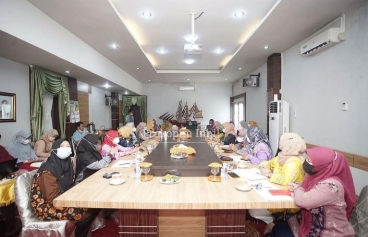 TEMBILAHAN, (INDOVIZKA)- Ketua Tim Penggerak PKK Kabupaten Indragiri Hilir yang juga Ketua Gerakan Satu Hati (GSH) jilid II Hj. Zulaikhah Wardan pimpin rapat progres perkembangan GSH, Sabtu, (23/10/21) siang.