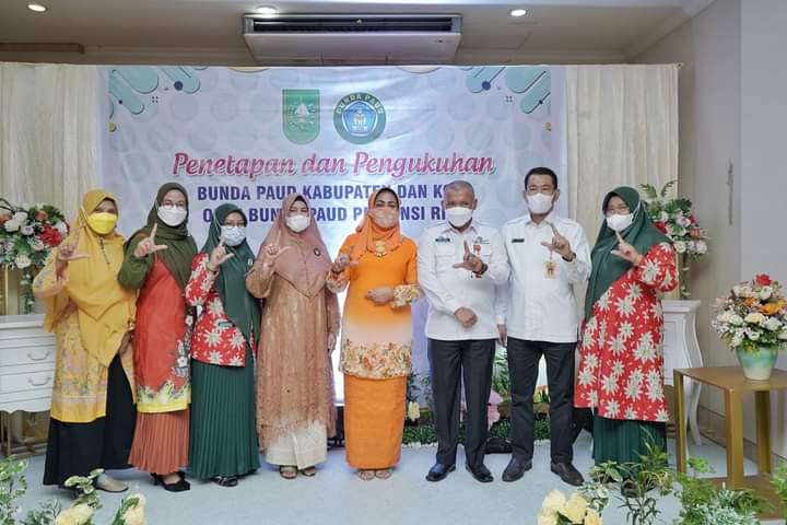 Kegiatan Pengukuhan ini dilakukan langsung oleh Bunda PAUD Provinsi Riau, Misnarni Syamsuar.