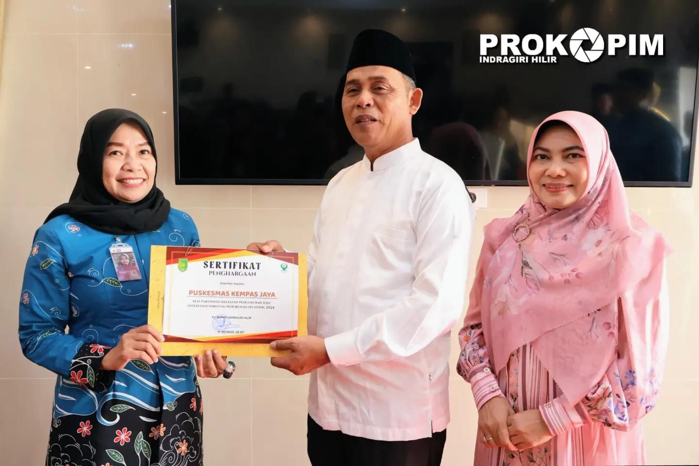 Dalam rapat evaluasi pengukuran dan intervensi serentak pencegahan Stunting ini juga di serahkan laporan kegiatan aksi stunting oleh Kepala Dinas Kesehatan Inhil, Rahmi indrasuri S.Km., MKL kepada Pj. Bupati Inhil H. Herman SE, MT serta penyerahan secara simbolis sertifikat kegiatan pengukuran dan intervensi oleh Pj. Bupati kepada Kepala Puskesmas.