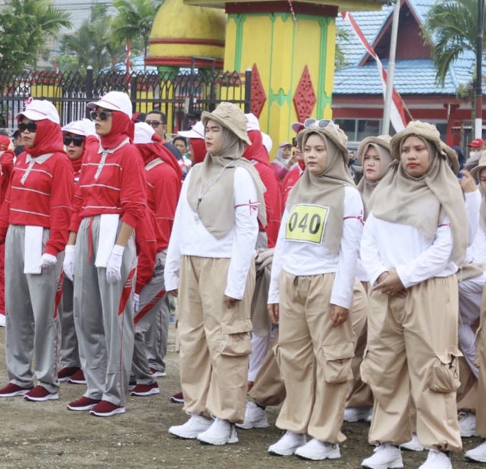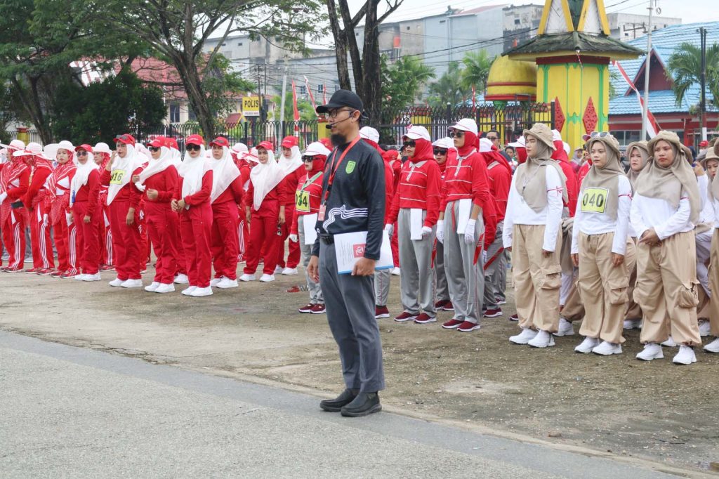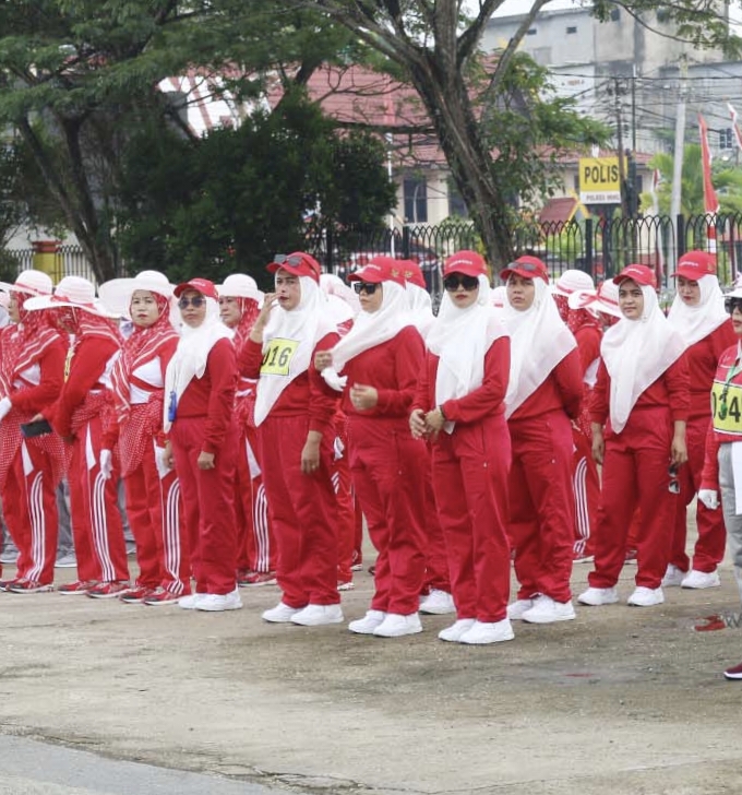Kegiatan yang diikuti ratusan peserta tersebut dipusatkan di Lapangan Gajahmada Tembilahan, Sabtu, (10/08/ 2024.)